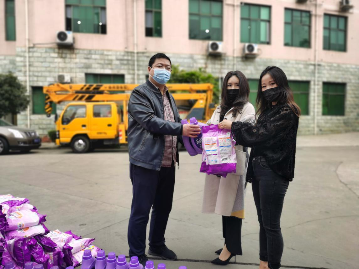 四川筑梦黛尔商贸有限公司主营花诗娜护肤品与氧言洗护产品中的洗衣液与皂粉。总经理向芳说:“供电公司是为我们老百姓做出很大贡献的一个部门,他们的责任大,任务重,不管是过年、过节还是灾情发生时,他们总在第一线,牺牲小家,为大家,为经济发展和我们老百姓的日常生活做出巨大奉献,让我们深深地感动。这次抗疫期间,正是他们保证了家家户户的电力充足,宅在家里可以看到电视,可以做饭,他们就是城市的光明使者。我作为一个80后刚创业的人来说,没有太大的力量做出什么贡献,只有将我们公司的产品,捐献给他们,尽一点微薄之力,因为产品不含荧光剂和磷,能够保证他们的身体健康和生命安全,也就保证了全体市民的供电安全了啊。”