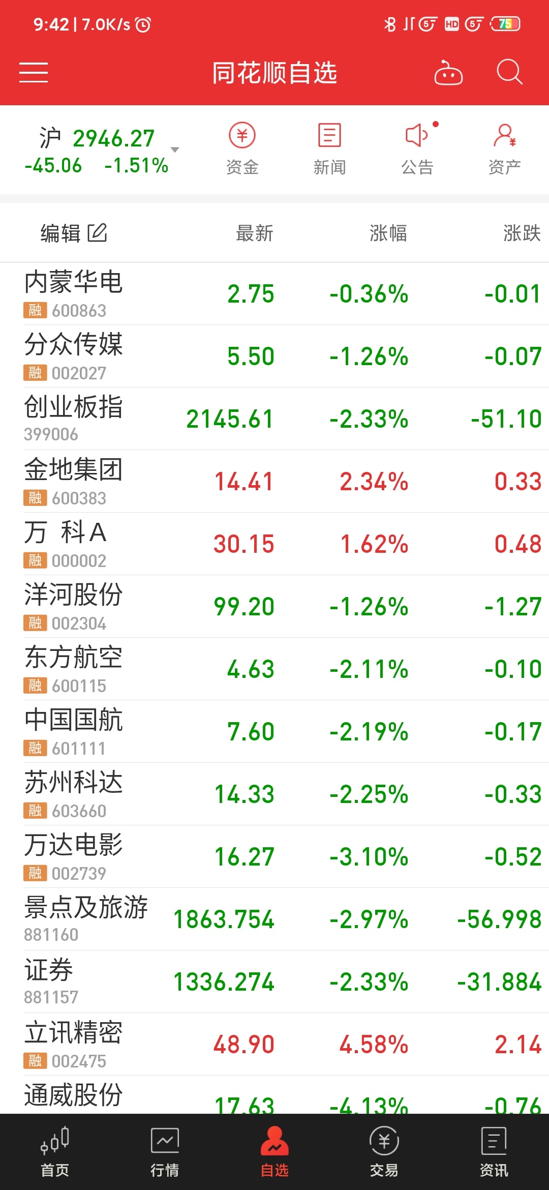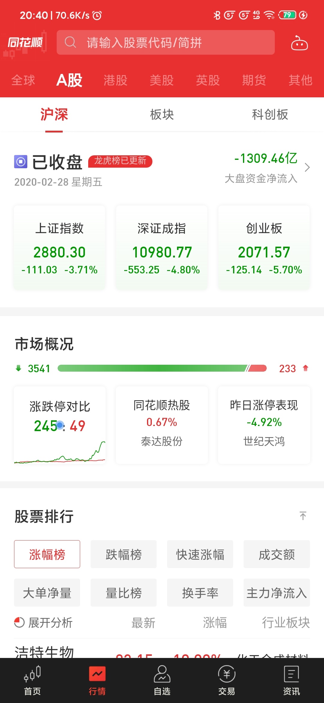 今天开盘前美股再次历史性暴跌,而我们的A股再无托盘之力,只能跟随暴跌,截至收盘创业板5%,上证3%的下挫,但是难能可贵,我的地产股仍然在企稳,甚至创了新高,真的是意外之喜,下周如果开盘后达到我的止盈线,我就卖出了,短期暂时不交易了,今天本来应该买基金的,但是真的没资金了,可惜。