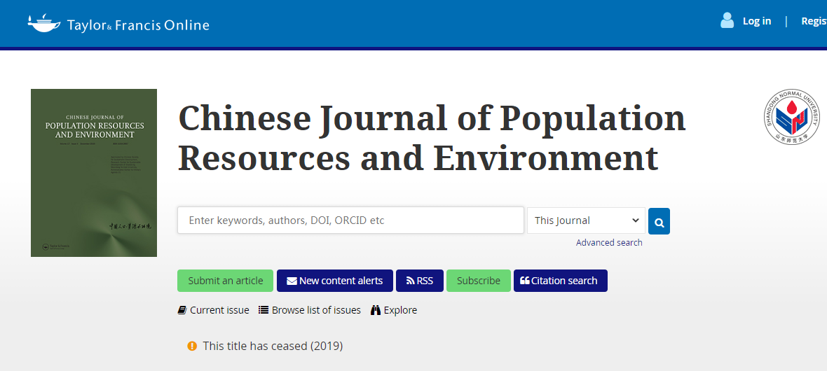 Chinese Journal of Population Resources and Environment is currently indexed in Emerging Sources Citation Index, SCOPUS, and EBSCO.