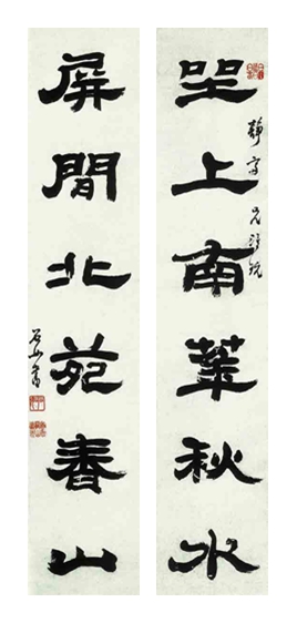 隶书七言联 ,135.4×30.7厘米,安徽省博物馆藏。