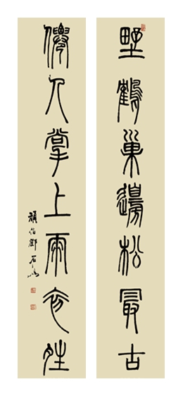篆书八言联 ,04×32.4厘米,曾经狄学耕、吴碧诚藏。