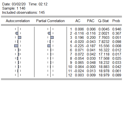 goodgoodgirl 发表于 2020-3-2 02:25 求助啊 我想做GRACH模型,但到这步不知道接下来干嘛。做了ADF检验p值数值判断出时平稳的。但这个滞后5阶显 ...