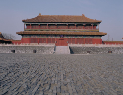 弘义阁与体仁阁作为太和殿的陪衬建筑左右对称,建筑形式完全相同,乾隆时体仁阁被火烧毁,就是仿照弘义阁重建的。由于二阁是太和殿的两厢,在形制上既要有主有从,又不能相差太大,影响和谐,因此建成楼阁形式,两层之间设腰檐,出平座,屋顶为单檐庑殿顶,此种做法使其高度达到23.8米,相当于太和殿高度的7/10,又高于与其相邻的庑房,既不逾越建筑等级之制,也无两厢渺小之感,同时又改变了建筑空间的呆板。二阁与主体建筑配合协调,使整组建筑愈显气势恢宏。