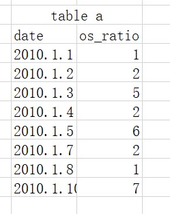 下面是一个简单的例子,table a里面缺失了1月6号和9号的值,想把这个时间序列补完整。