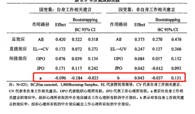 看到有一篇文献里,有两个中介效应的相减,图中红色框的A和B,是OPO-JPO的中间效应,A和B的Effect系数是直接OPO和JPO的effect系数相减的,但A和B置信区间不知道是怎么算的,好像也不是直接相減啊,想求问下大大们!(最近毕设论文也要用到这种格式...)