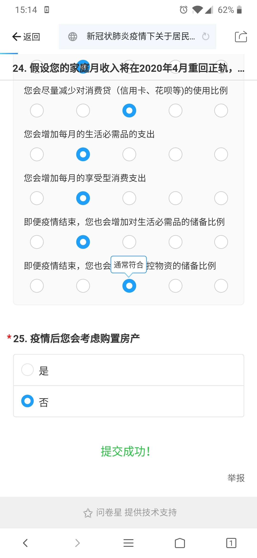 自己填写完成后,又将问卷转发给弟媳妇填写完成,祝科研顺利!