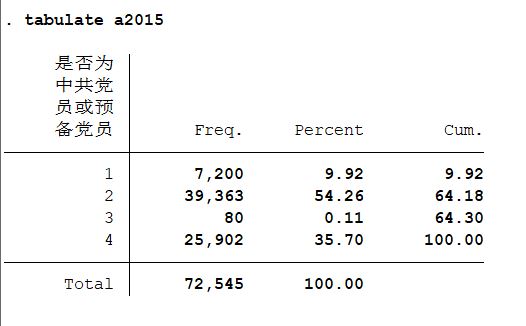 觅寄忧谷 发表于 2020-3-3 10:11 CHFS2017里a2015是否为党员,问卷里只有1是、2不是,为什么数据库里有1234共4种数据?如图