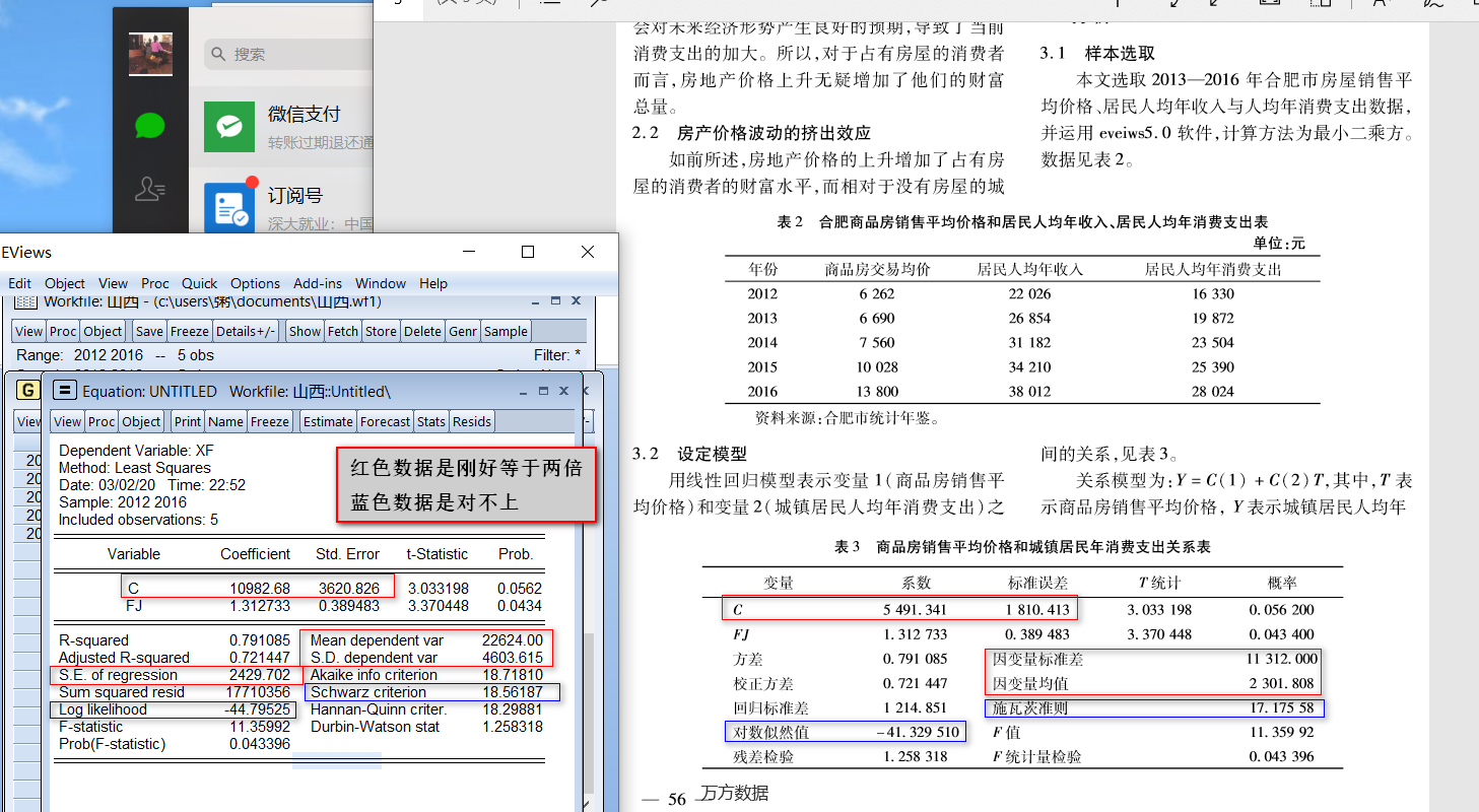 下面是一篇其他人的论文,自己用里面的数据按照作者的方法用Eviews运行一遍,但是得出来的结果和作者的有出入,红色框框里的数据自己运行出来的都刚好等于作者数据的两倍,想知道是哪一步出错了。