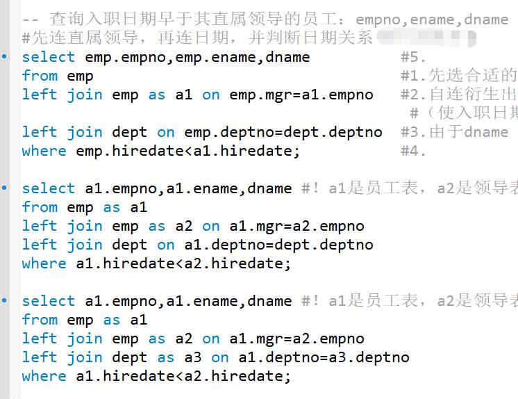 这些都是预习课跟过一遍的内容,本以为没到子查询都不会有问题,但是多表查询同时用上自连接和外连时,刚开始还是无从下手。