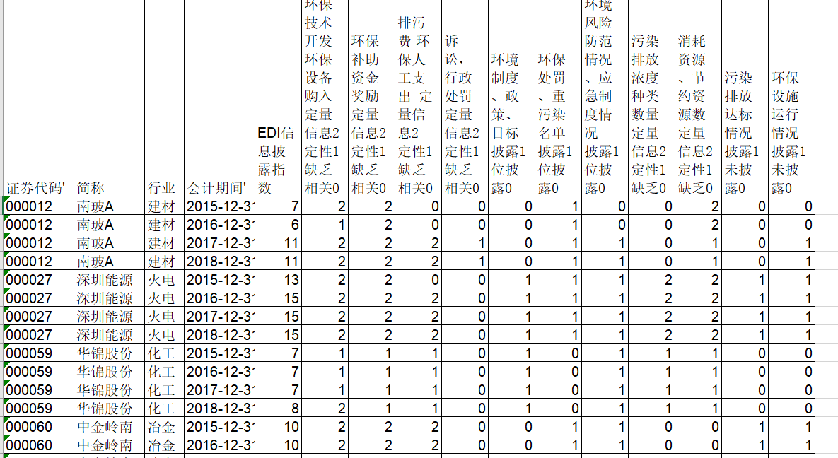 啊吖吖啊 发表于 2020-3-4 15:11 上市公司重污染行业环境信息披露指数EDI数据15-18年沪深A股重污染上市公司环境质量评价指数EDI数据2015-201 ...
