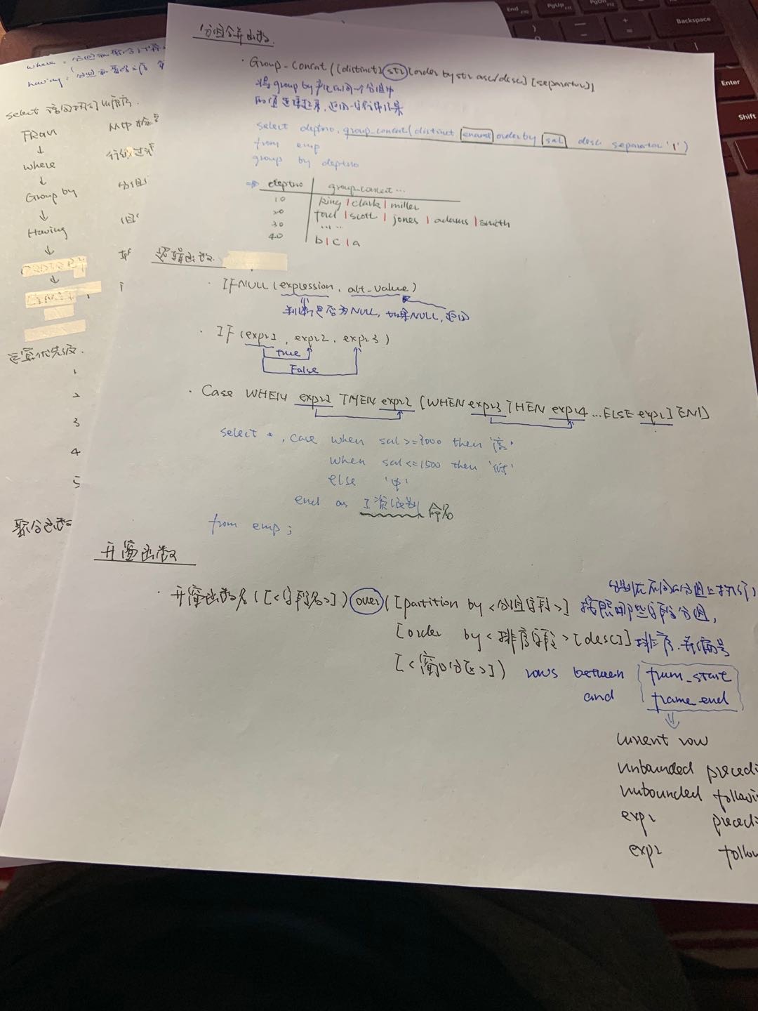 今天学了比较复杂的分组合并函数,开窗函数,作业题目有点复杂,有地方想的和答案有出入~~~明天听老师讲解。