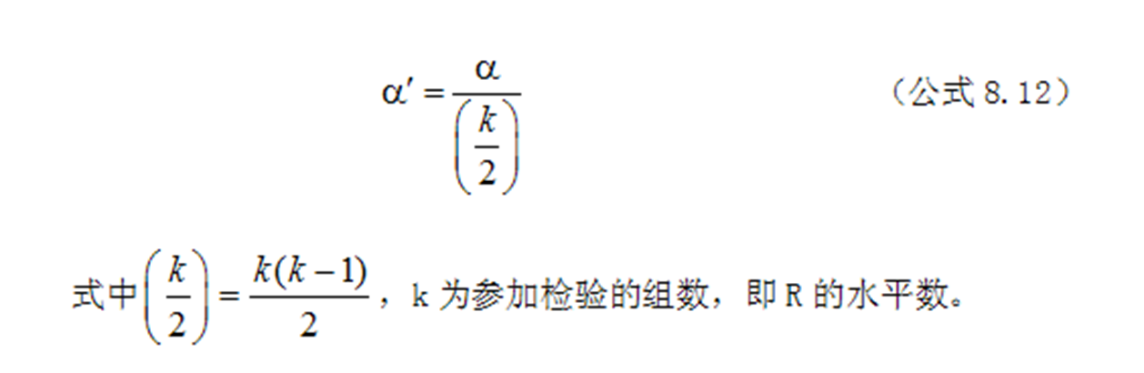 分析目的为K个实验组间,任两个率均进行比较,检验水准α’可用下式估计: