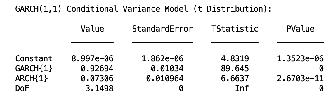 ARCH{1} 0.07306 0.010964 6.6637 2.6703e-11