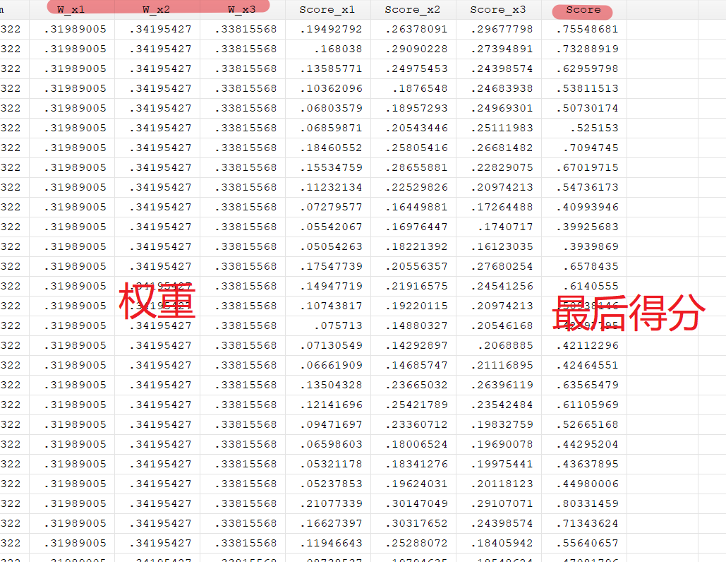 湘妃怨7 发表于 2020-9-25 19:19 楼主,算出来的各指标权重怎么是一列一列的,不应该是每个指标只对应一个权重吗?还需要怎么处理?