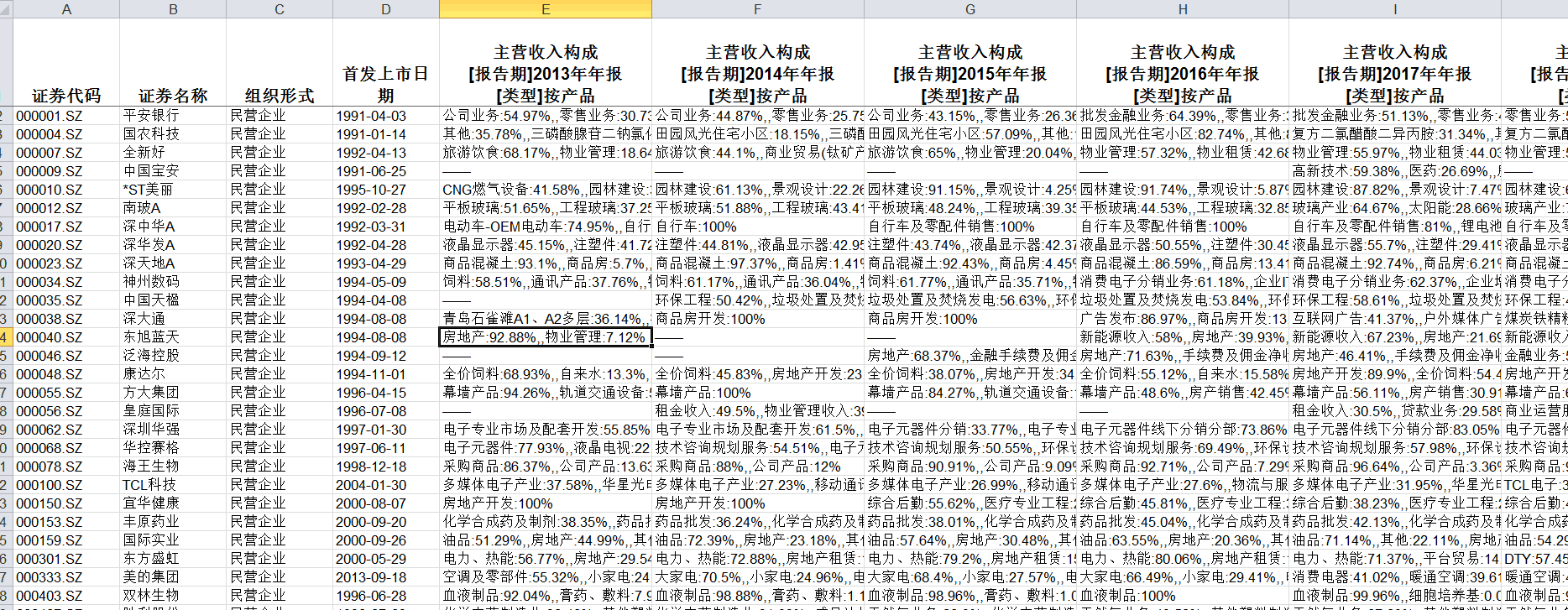 民营上市企业数据 各项目营业收入.xls
