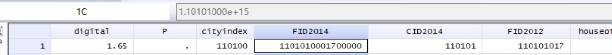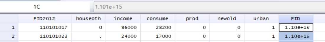 FID2014在每一列当中显示的是正常数据,但选中某一个上面显示的具体数据就是科学计数法。
