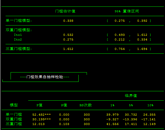 做出了门槛模型 但双重门槛模型的临界值都是负数 这种情况正常吗?