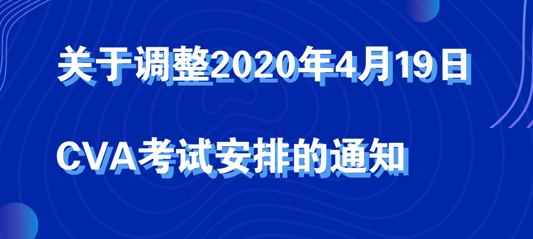 感谢您对注册估值分析师(CVA)协会的一贯支持与认可。为落实国家针对新型冠状病毒感染的疫情防控工作并采取预防措施,CVA协会与考试服务机构ATA(全美在线)对疫情形势及考场安全进行充分评估后,为最大化保障CVA考生和考务人员的健康与安全,CVA协会决定推迟4月19日在全国所有城市考点举办的CVA注册估值分析师考试。