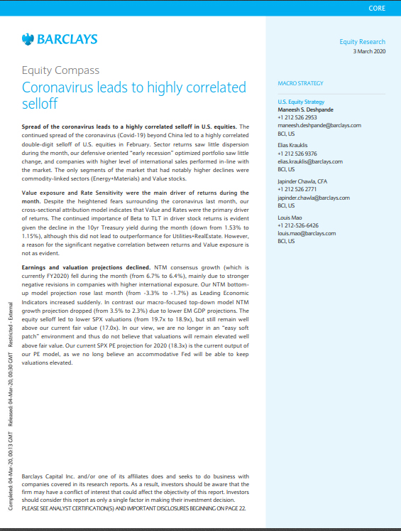 巴克莱-美股策略:与冠状病毒高度相关的抛售-2020.3.3-33页