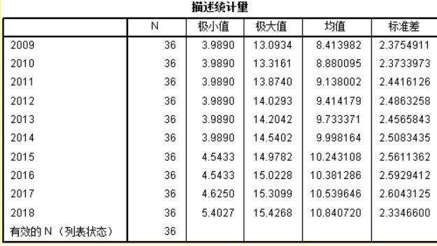 kuangsir6 发表于 2020-3-12 11:33 SPSS---分析---描述统计---描述 把所有你需要的年份自变量都选中,放在中间的变量框里,点击“确定”按钮 ...