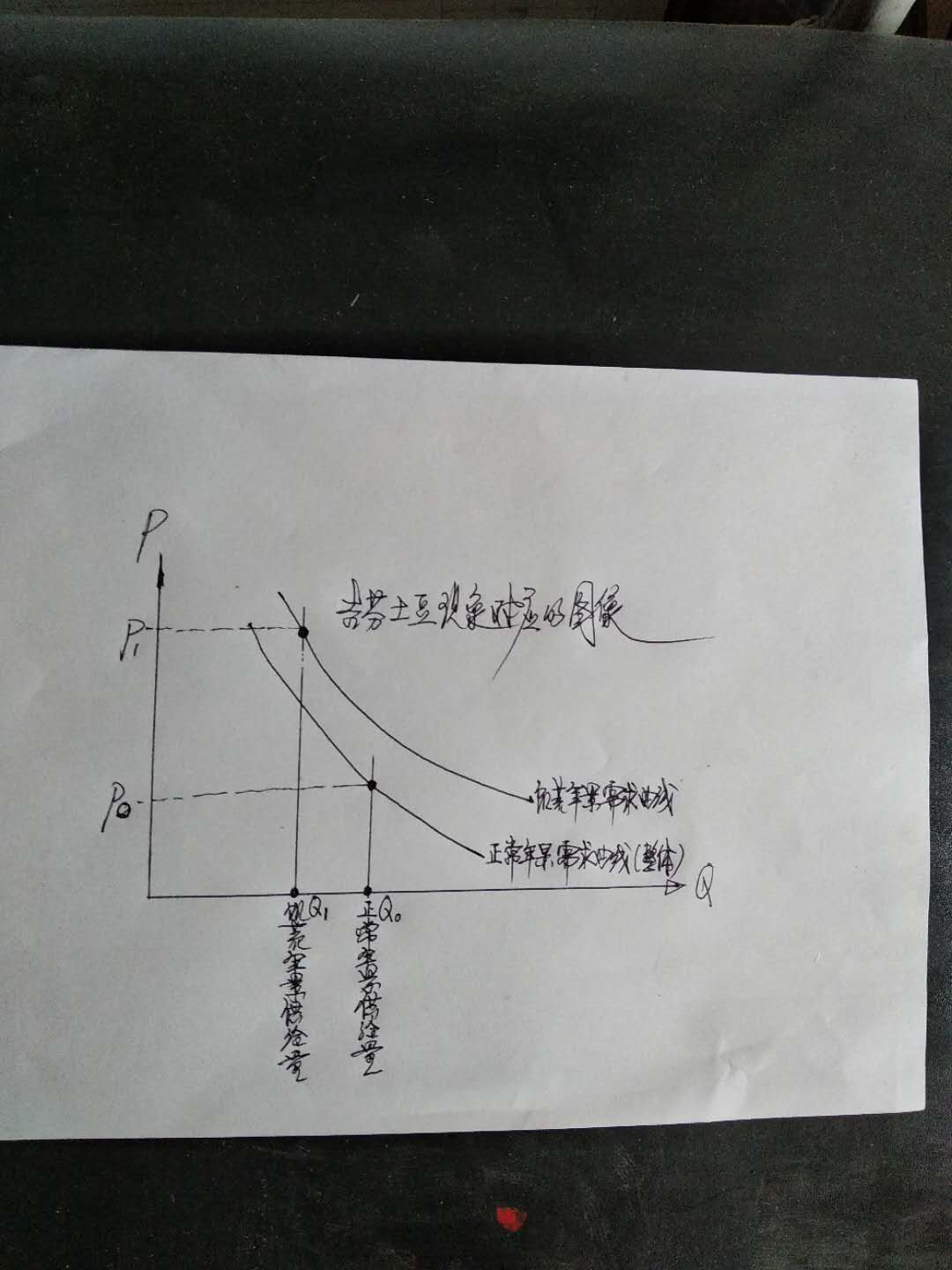 如果真的存在吉芬土豆现象,可以推断这里的需求量只是些许个体的需求量。为什么呢?因为当年整体土豆供给量减少了,整体供给量减少了整体需求量如何会增加呢?