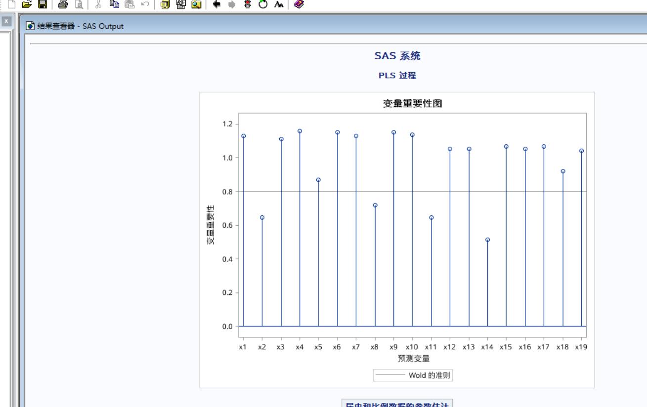 PROC PLS data=example cv=one method=pls cvtest details plots=vip;