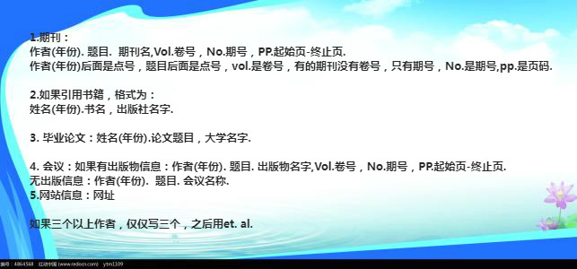 正式来说,APA格式指的就是美国心理学会(AmericanPsychologicalAssociation)出版的《美国心理协会刊物准则》,目已出版至第五版、总页数超过400页,而此协会是在美国具有权威性的心理学学者组织。APA格式起源于1929年,当时只有7页,被刊登在《心理学期刊(Psychological Bulletin)》。