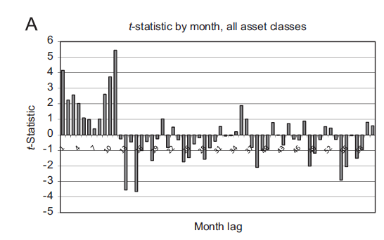 graph bar dallsign,over(t)ytitle(t-Statistic) note(Day lag,span) title(All futures) subtitle(By sign) xlabel(1(3)36)