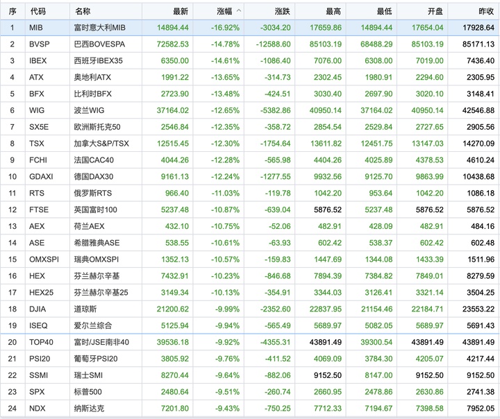 3月12日,本是植树节,结果,全球股市绿化率近100%,美盘再次大幅低开,道指跌至21200点,跌幅达到9.99%,标普500同样收跌9.51%,纳斯达克跌了9.43%,这已经不是射不射总统去太阳的事情了。