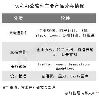 远程办公是指通过现代互联网技术,实现非本地办公,通过各类办公软件实现实时沟通、高效协作。目前来看,远程办公软件主要产品可分为以下几类: