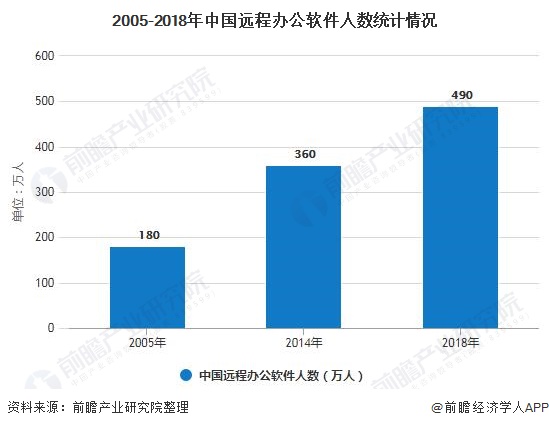 目前,美国已有超过80%的企业引入了远程办公制度,而我国引入远程办公制度的企业相对较少,据Global Workplace Analytics统计数据显示,2018年,我国远程办公软件人数约为490万人,与发达国家相比,我国远程办公普及率仍然较低。