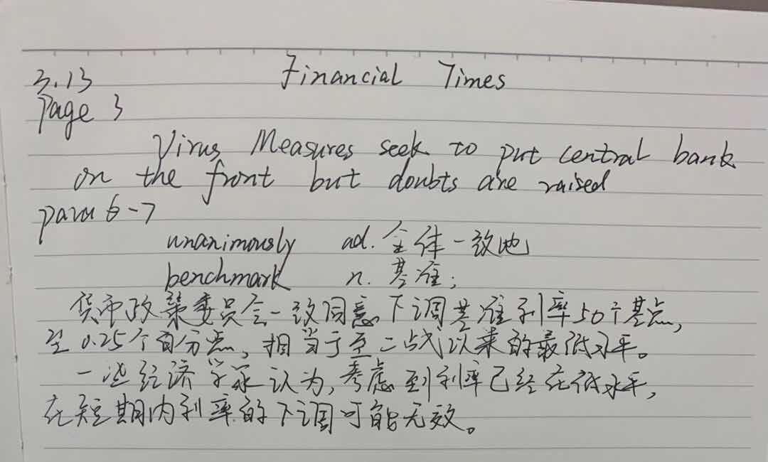 FT3.12virus measures seek to put central bank on front foot but doubts are raised.今天有些忙,迟了一些。
