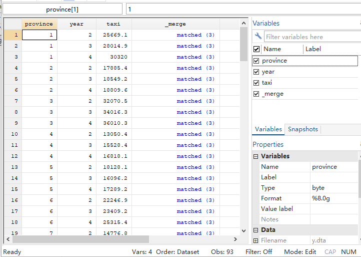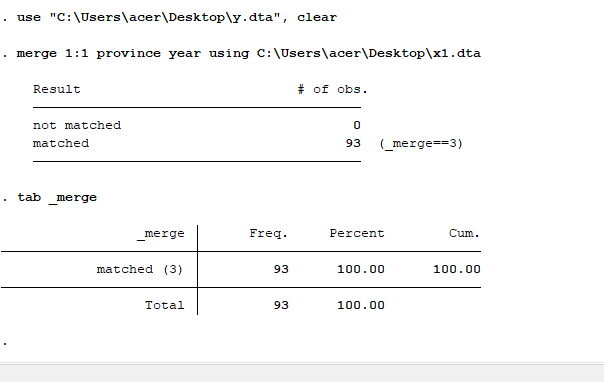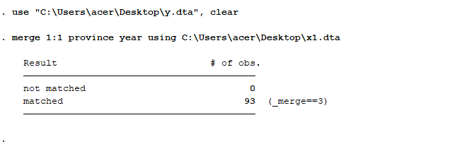 用stata面板数据合并一直出错,输入代码merge代码后,数据中没有出现x1这一列,还是原