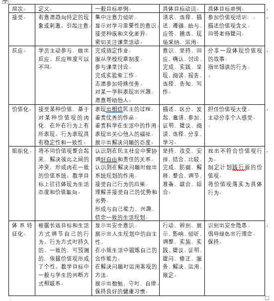 摘自克拉斯沃和布鲁姆等人著作《教育目标分类学:第二分册,情感领域》(Taxonomy of Educational Objectives: Book2, Affective Domain)