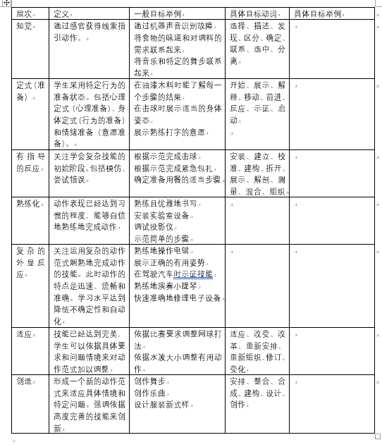 摘自辛普森《心理动作领域的教育目标分类学》(The Classification of Educational Objectives in the Psychomotor Domain)