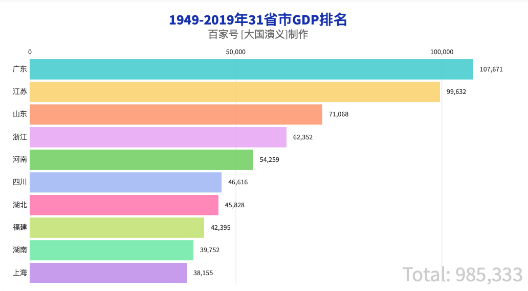 1949-2019历年全国31省市GDP排行榜!用找到的数据做了一个视频