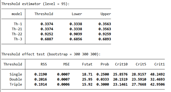 快递少年 发表于 2020-3-16 19:19 面板门槛模型单一和三重门槛都通不过,只有双重门槛通过了,模型可以选择双重门槛吗?