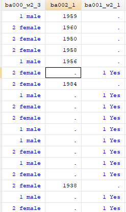 ba001-w2-1是问回访者,系统中记录的年龄是否正确,左边ba002-1是问新的受访者年龄多少。我没找到记录过的回访者数据应该在哪里找,求求各位大神帮帮我!