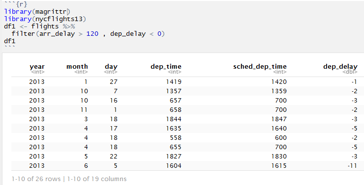 各位大神,请问这个问题该怎么解决Rmarkdown的时候,分块可以运行,但是如果用knit就报错,用的数据是自带的nycflights包
