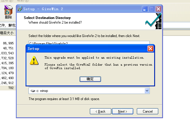 急急急!在安装givewin220up.exe时出现了需要在原有基础上安装的提示,怎么解决