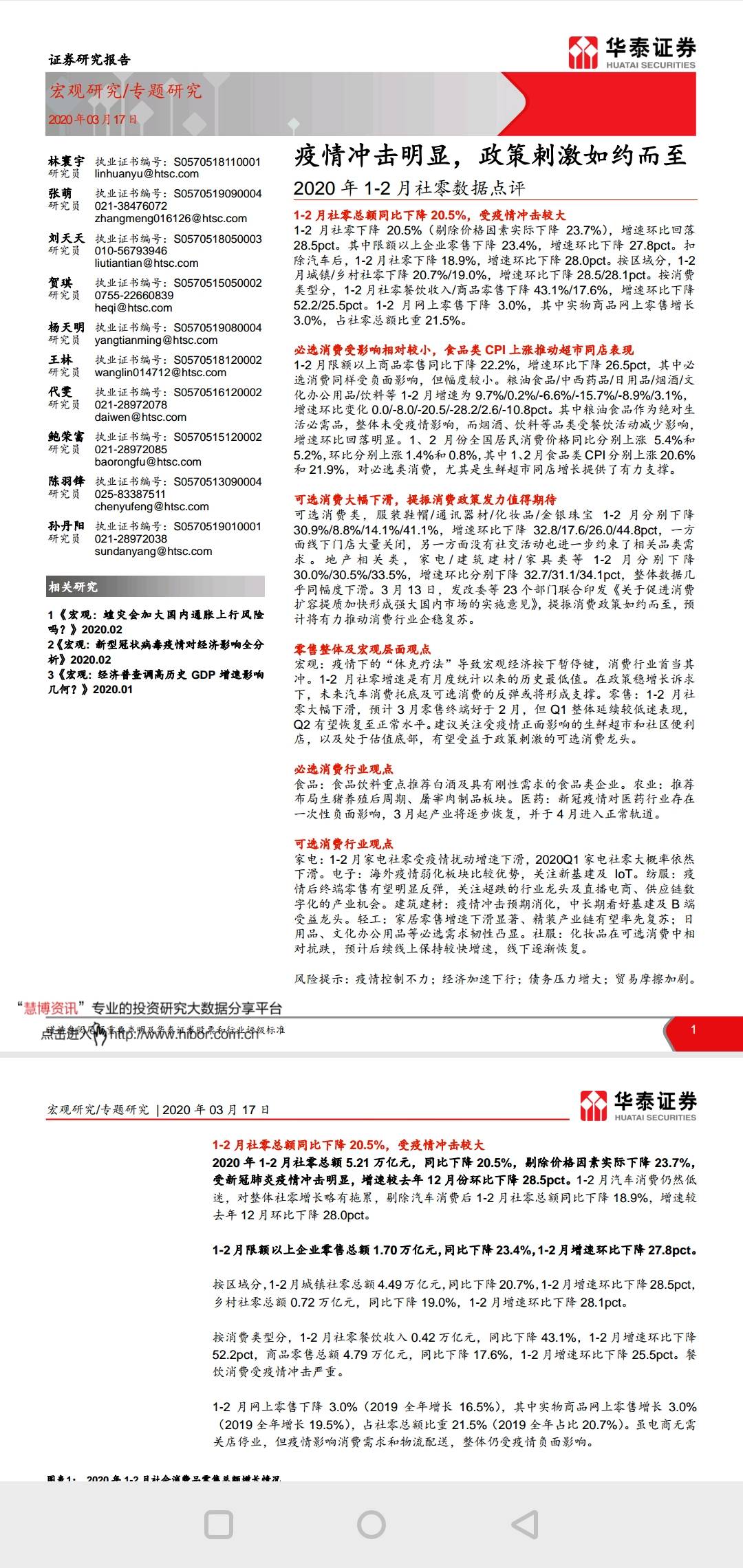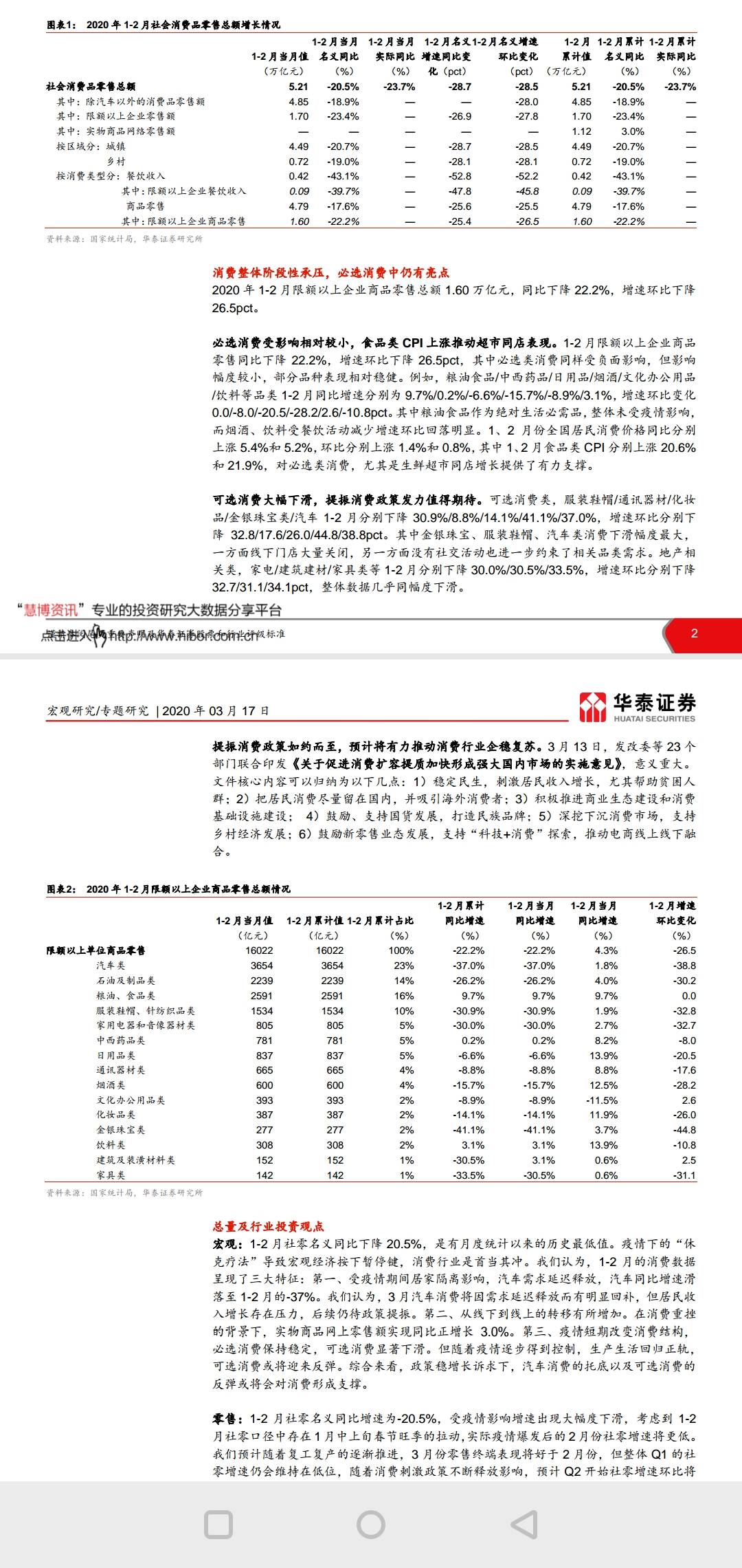 2020年1-2月社零数据点评(华泰证券)