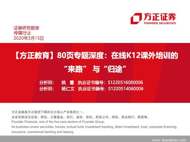 教育行业80页专题深度:在线K12课外培训的“来路”与“归途”-20200315-方正证券-79页.pdf