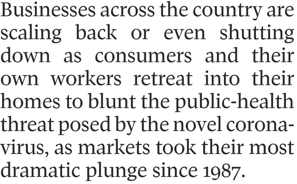 由于顾客和员工呆在家里躲避新型冠状病毒引起的公众健康威胁,美国各地的企业都在缩减规模,甚至关门大吉。就像1987年市场出现的最大跌幅。