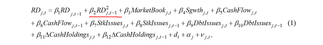 请问如图所示的欧拉方程中,被解释变量RD的滞后一期的平方项是内生变量吗?