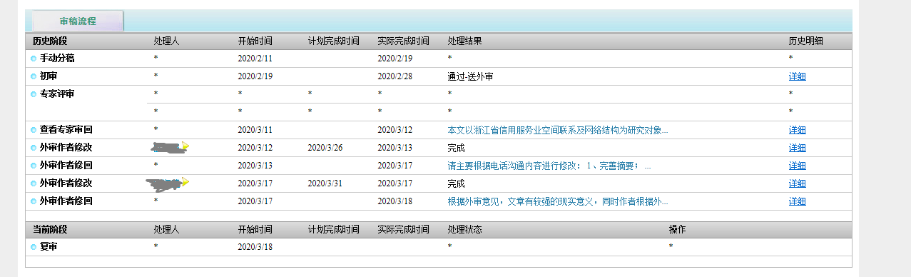 南核北核找我fa 发表于 2020-3-18 20:55 所有人行系统的期刊。都有两个审稿程序。对于内部工作人员。由编务这里走。高校类的文章,都是走主编那里的 ...