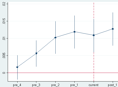 7693645276 发表于 2020-3-18 22:32 小白一名,做平行趋势检验出现了这样的结果,我的数据有错吗需要怎么改