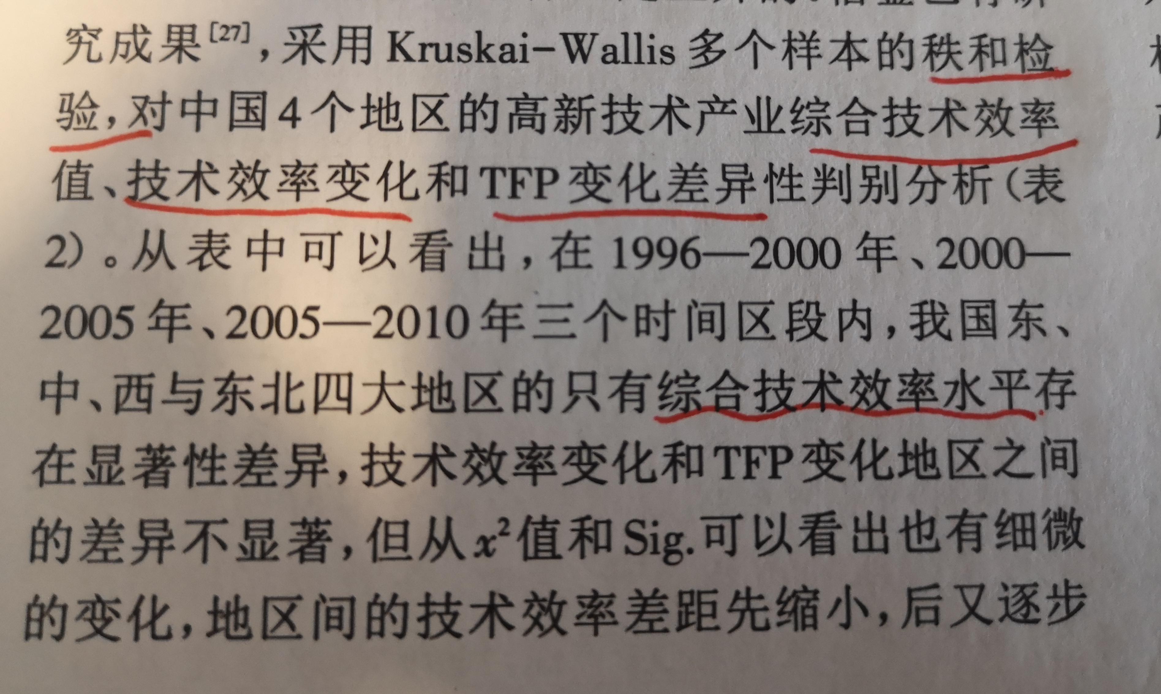 如图中文献所属,采用K-W多个样本的秩和检验,对四个地区的三个变量查一下进行判别分析,并得出sig.和x2值。