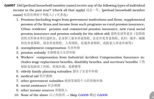 当要计算其他家户成员的转移收入时 遇到了问题,共九个选项,一共有可以询问12个人,但是每个问题,又有每年的收入和每月的收入,不知道命令该怎么写了。求助大神。