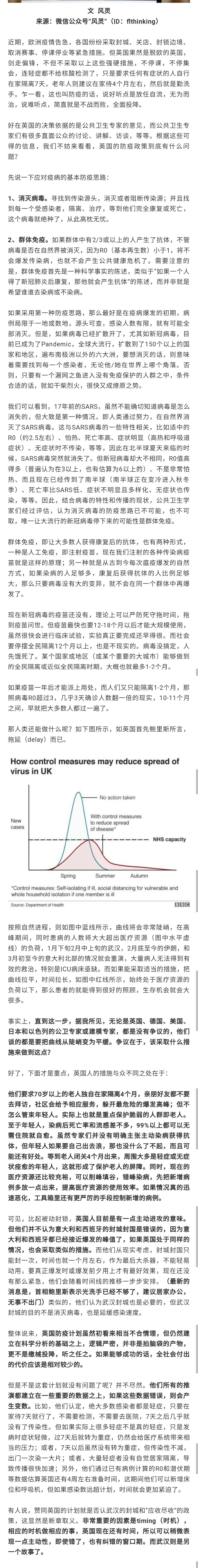 有人说,赞同英国的计划就是否认武汉的封城和“应收尽收”的政策,这显然是断章取义。非常重要的因素是timing(时机),相应的时机做相应的事,英国现在还有时间,所以可以稍微表现一点主动性,即使错了,也有纠错的窗口期。而武汉则是另一个故事了。