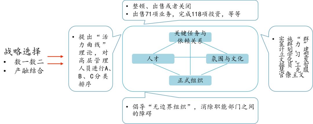 在战略清晰之后,杰夫·伊梅尔特和他的前任杰克·韦尔奇一样,也在组织架构、人力、文化做了全面的变革(图4)。